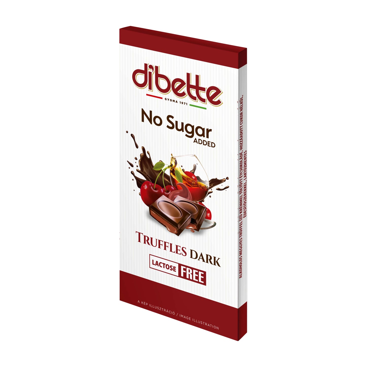 Genießen Sie den luxuriösen Geschmack der Dibette Trüffel Zartbitter Tafel, gefüllt mit einer dekadenten Kirsch-Trüffel-Creme, verfeinert mit einem Hauch von Alkohol. Hergestellt ohne Zuckerzusatz und natürlich gesüßt, vereint diese laktosefreie Leckerei die sanfte Intensität hochwertiger dunkler Schokolade mit einem reichhaltigen, charaktervollen Kirsch-Trüffel-Kern für ein wahrhaft raffiniertes Erlebnis. Dezente Alkoholnoten heben das Geschmacksprofil hervor und machen jeden Bissen zu einem eleganten Genuss. Perfekt zum Verschenken, für festliche Anlässe oder für einen raffinierten Moment der Selbstverwöhnung – diese Tafel zelebriert hochwertige Zutaten und zeitlosen Geschmack.
