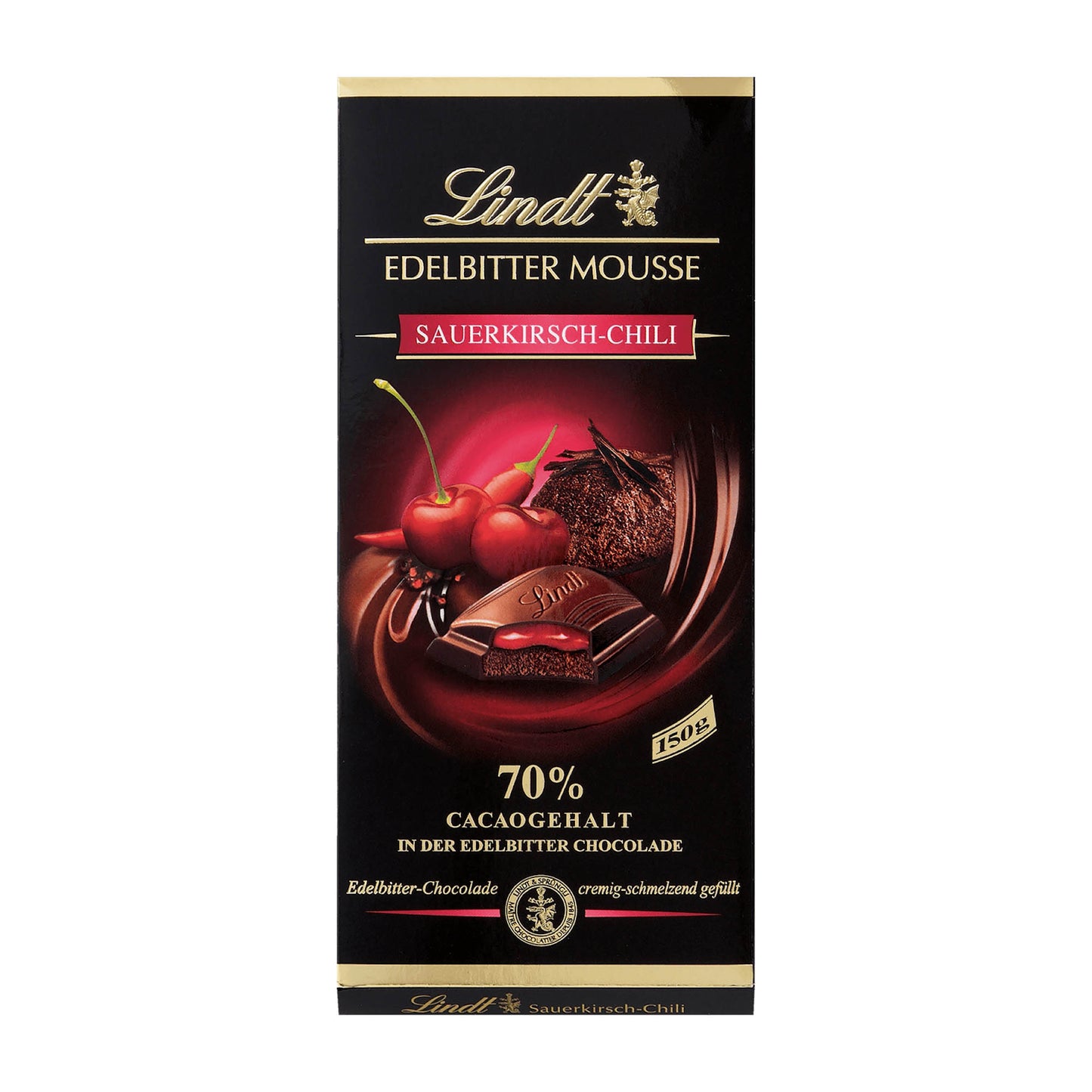 Lindt Edelbitter Mousse Sour Cherry-Chili dark chocolate bar, 150 g
