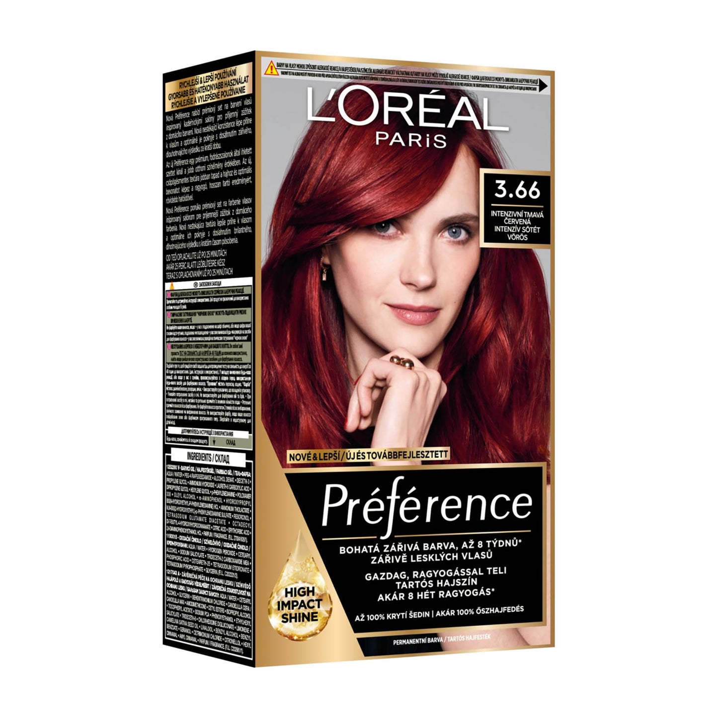 Loreal Paris Préférence 3.66 Intense Dark Red features a special gloss technology that combines the proven gel formula with new precious oil drops. It imparts your hair with radiant color full of luminosity and naturally looking reflections. The unique nuances of Préférence with light-reflecting colorants ensure a shiny color rich in reflections.