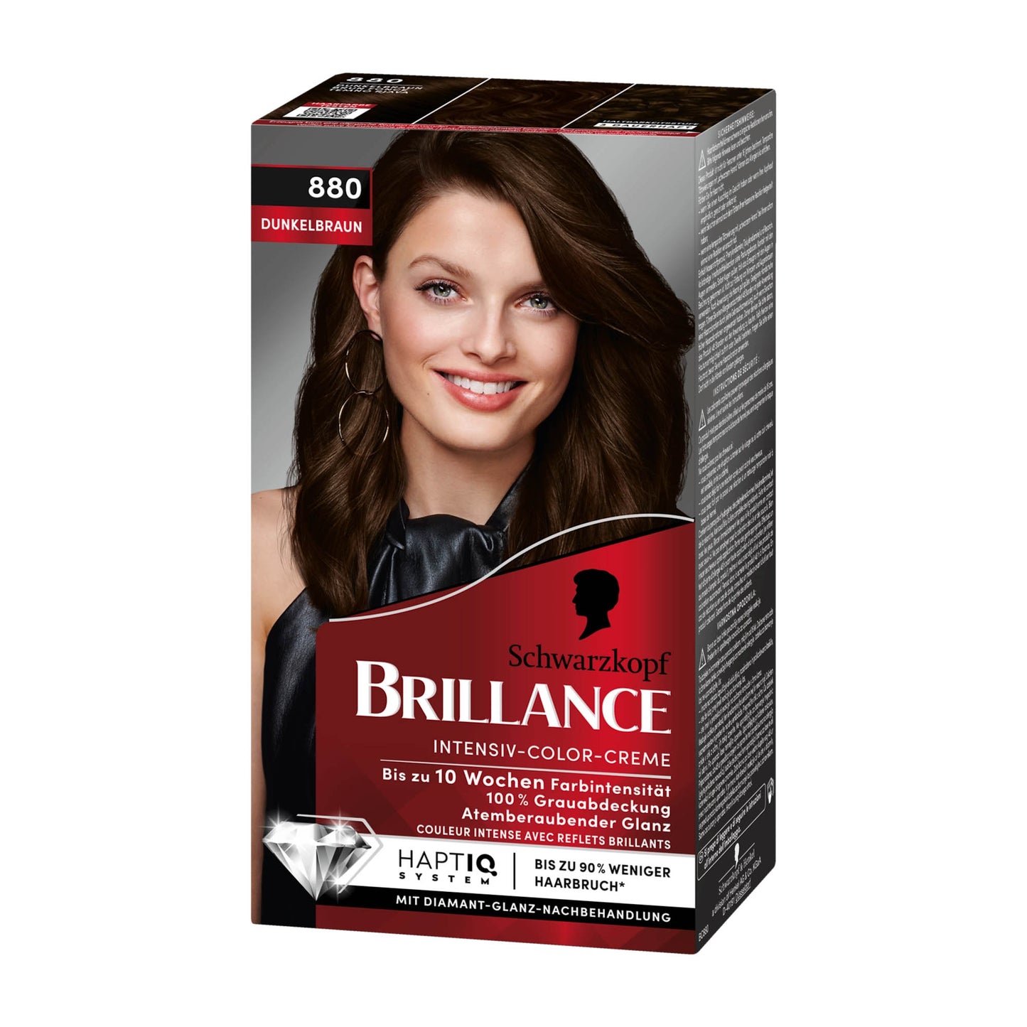 Thanks to Schwarzkopf’s color expertise, Brillance Intensive Color Creme 880 Dark Brown offers uniquely intensive hair color in professional quality for use at home – for up to 10 weeks of color intensity. The permanent coloration provides 100% gray coverage, irresistible luminosity and breathtaking shine. After coloring the hair, the care conditioner encloses the color pigments thanks to valuable, cold-pressed oil and provides extra protection for strong, healthy-looking hair with a diamond shine effect.