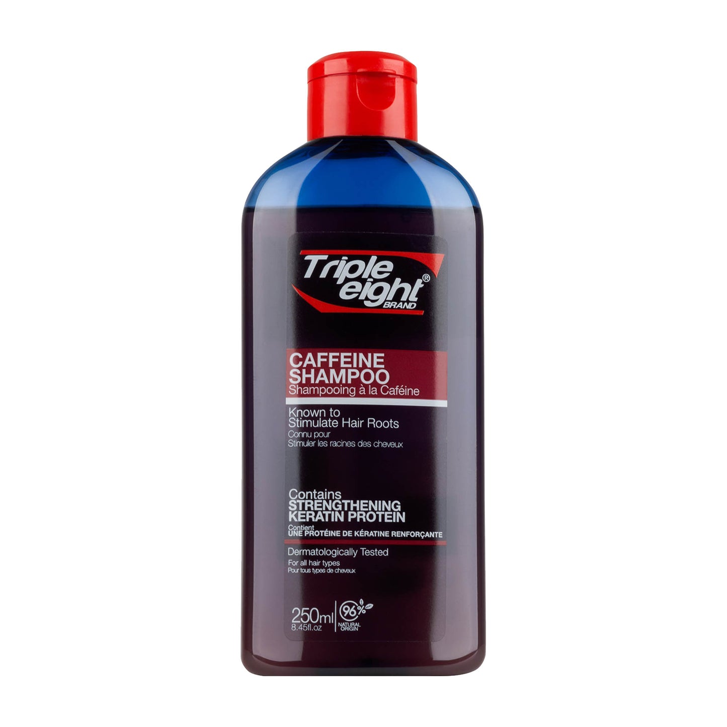Triple eight Caffeine Shampoo features a hair-growth formula that strengthens, protects, and promotes growth. The shampoo contains strengthening keratin and caffeine, preventing hair loss and stimulating regrowth. The caffeine promotes blood flow to hair follicles, resulting in stronger and healthier hair. This shampoo is suitable for all hair types and can be used daily.